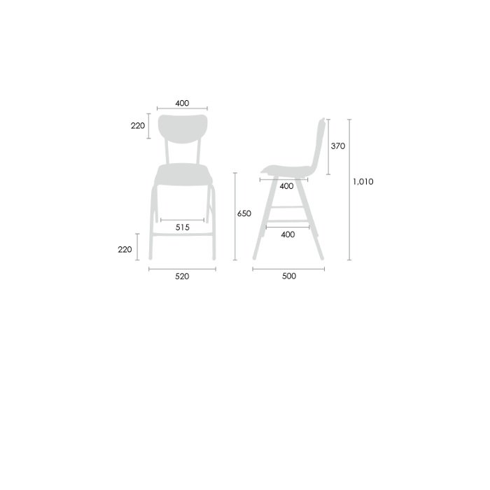asiento y respaldo: en copolimero de polipropileno con UV, retardante de flama y libre de metales pesados. Acabado antiderrapante.