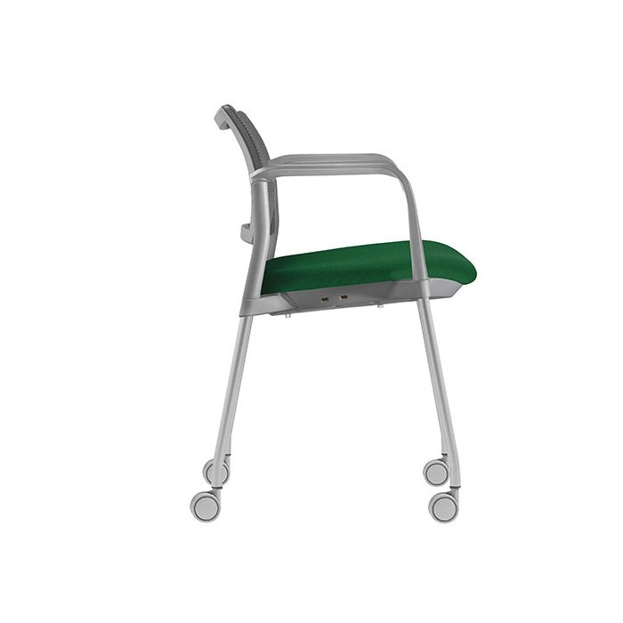 estructura: de acero tubular de 7/8″ de diámetro, calibre 14; con acabado en pintura epóxica (electrostática) color negro mate o gris, con rodajas giratorias tipo dual en color gris y con descansabrazos de polipropileno en color gris o negro.